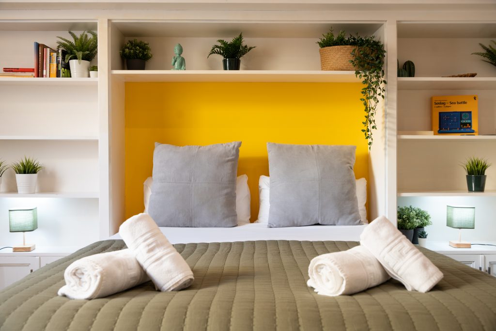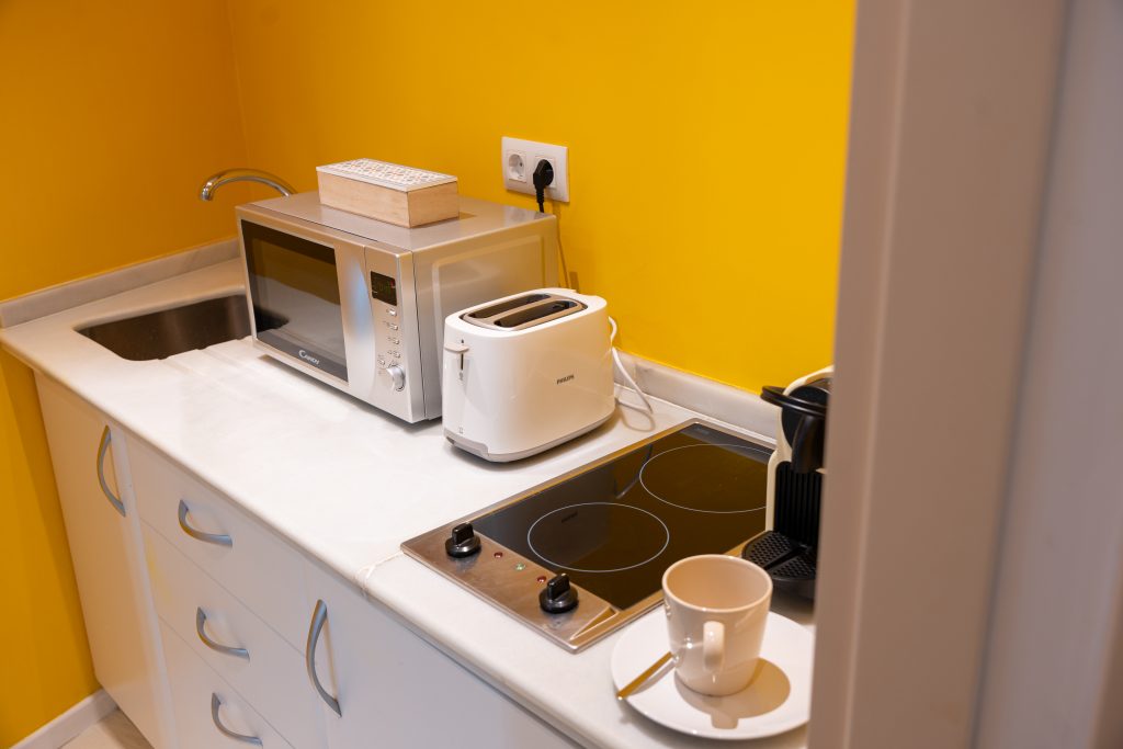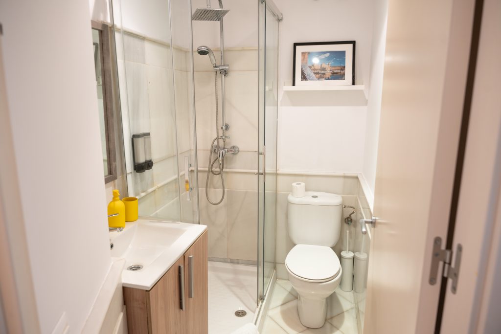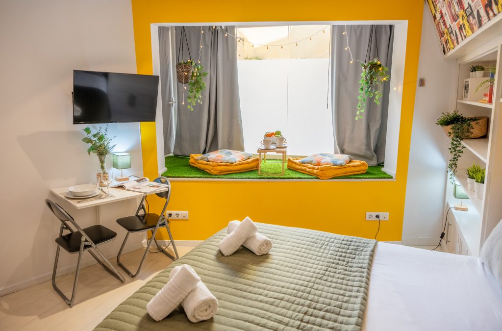El apartamento turístico 🟨 YELLOW, – calle San Eloy, 20, Sevilla, España– es interior, con capacidad hasta 2 personas, dispone de un dormitorio con cama de 150cm, ventana a un patio interior, baño ensuite y cocina equipada. El edificio cuenta con ascensor.