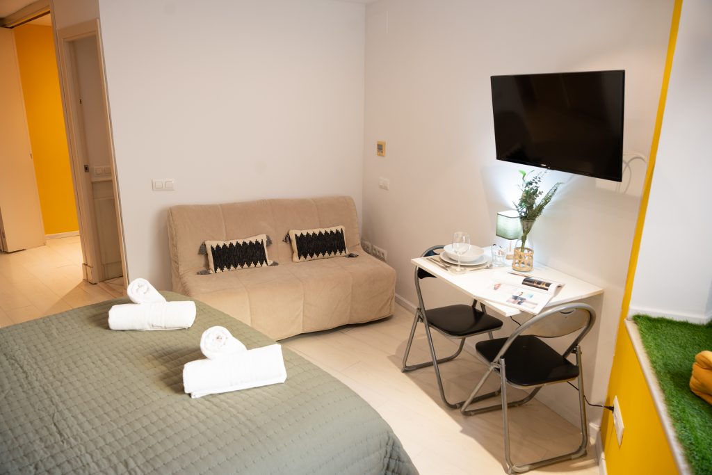 El apartamento turístico 🟩 GREEN, –calle San Eloy, 20, Sevilla, España– es exterior con una capacidad para hasta 4 personas. Cuenta con un dormitorio con cama de 150cm, un baño, un amplio comedor, salón con un sofá cama de 150cm y ventana con vistas a la calle San Eloy. La cocina tiene todo lo necesario para hacerte sentir como en casa. El edificio cuenta con ascensor.